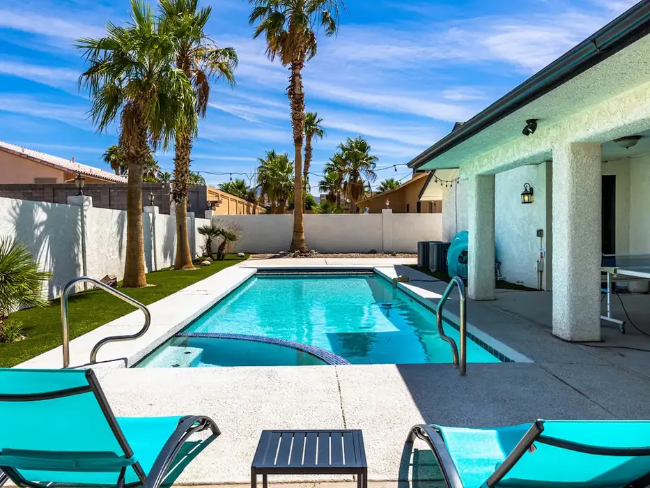 This stylish place to stay is perfect for group trips. We have completely refurbished our home with soft wood floors, brand new AC units, brand new bathrooms with beautiful walk in showers, custom closet bunk beds in addition to 4 spacious bedrooms, fast wifi, brand new pool and spa with ping pong, corn hole, hammock near the pool, and an outdoor automatic movie screen with projector and seating. This home was built to entertain or retreat to after a long day on the lake! Dog/Tesla friendly!